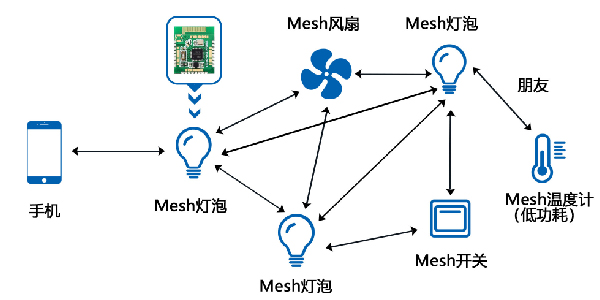 藍牙低功耗網狀網絡(BLE Mesh)是基于藍牙低功耗(BLE)協議構建的一種通信協議,它能夠讓大量BLE設備組建為一個網狀網絡,在足夠大的物理覆蓋范圍內達成設備間的互聯與協同控制,進而滿足多設備場景下的通信需求。