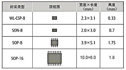 串行接口存儲器的產品陣容有16Kbit至4Mbit的SPI接口產品,以及4Kbit至1Mbit的I2C接口產品。電源電壓除主要的3.3V工作產品外,正在擴充1.8V工作產品。封裝除能夠與EEPROM及串行閃存兼容的SOP外,還提供可穿戴設備用SON(Small Outline Non-leadedpackage)及WL-CSP(Wafer Level Chip Size Package)等超小型封裝產品。